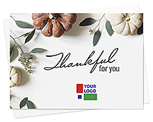 Business Thanksgiving cards are a perfect way to say thank you to your corporate clients, business prospects and employees this holiday season. Choose from a wide selection of unique, quality general Thanksgiving cards, photo Thanksgiving cards or logo Thanksgiving cards. If you like to select your own verse, see our Custom Verse Thanksgiving Cards.