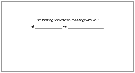 Interior Text: I'm looking forward to meeting with you at _________ on ___________.