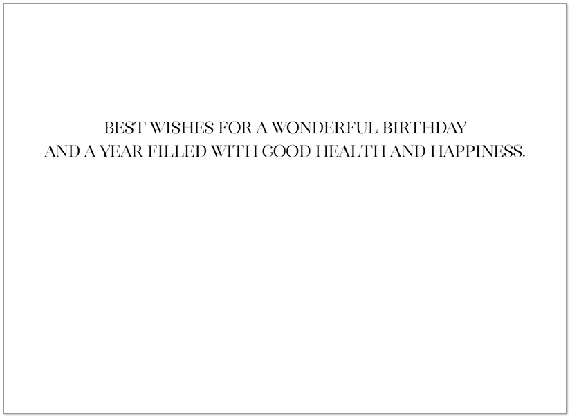 Interior Text: Best wishes for a wonderful birthday and a year filled with good health and happiness.