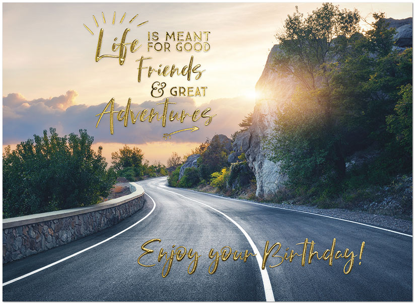 Exterior Text: Life is meant for good friends and great adventures. Enjoy your birthday!