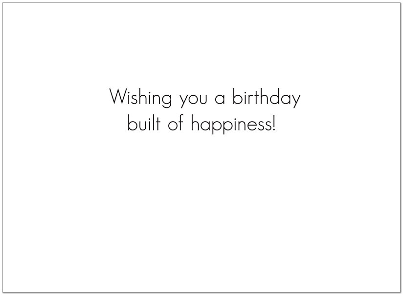 A birthday card featuring a city skyline under construction and silver foil stamping. Printed on satin FSC® paper.