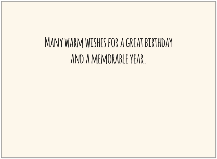 Interior Text: Many warm wishes for a great birthday and a memorable year.
