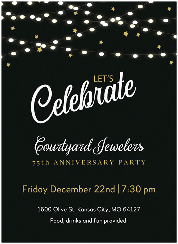 This elegant invitation features a celebration lights design. Printed on Printed on satin FSC® paper.