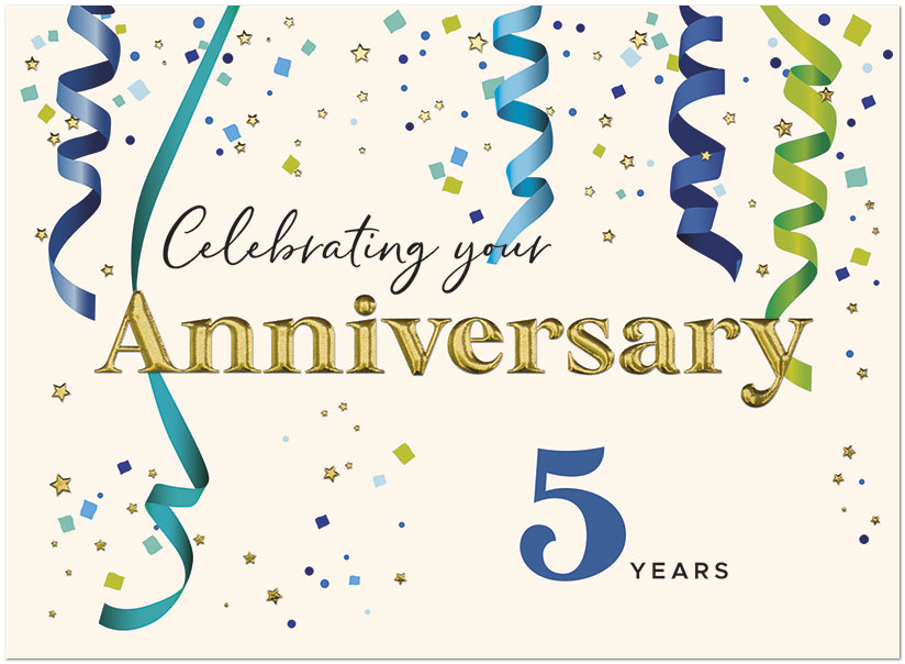 This anniversary card can be customized to celebrate employee milestone anniversaries. The elegant confetti design features gold foil embossing on vanilla FSC® paper. Choose from 1,5,15,20,or 25 years.