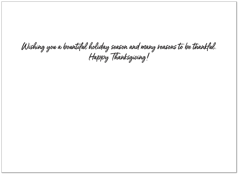 Interior Text: Wishing you a bountiful holiday season and many reasons to be thankful. Happy Thanksgiving!