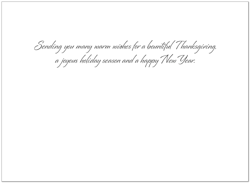 Interior Text: Sending you many warm wishes for a bountiful Thanksgiving, a joyous holiday season and a happy New Year.