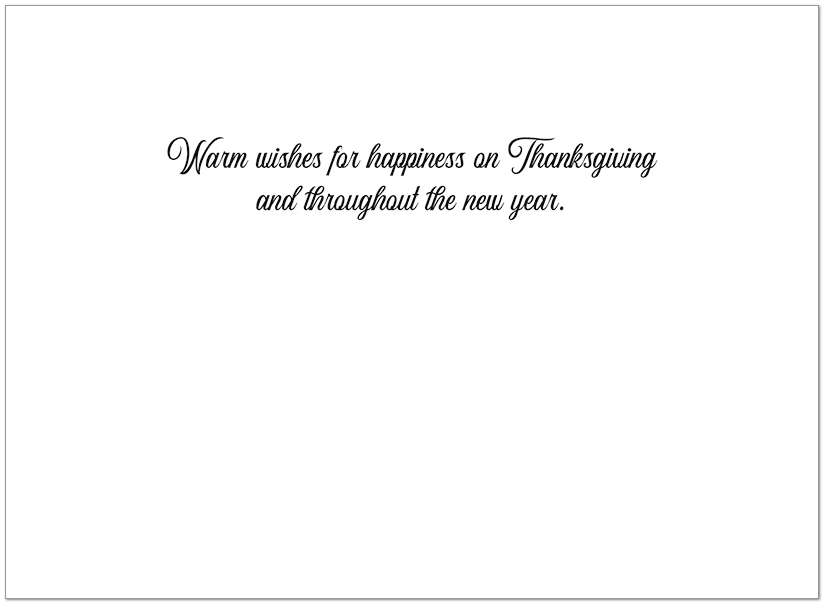 Interior Text: Warm wishes for happiness on Thanksgiving and throughout the new year.