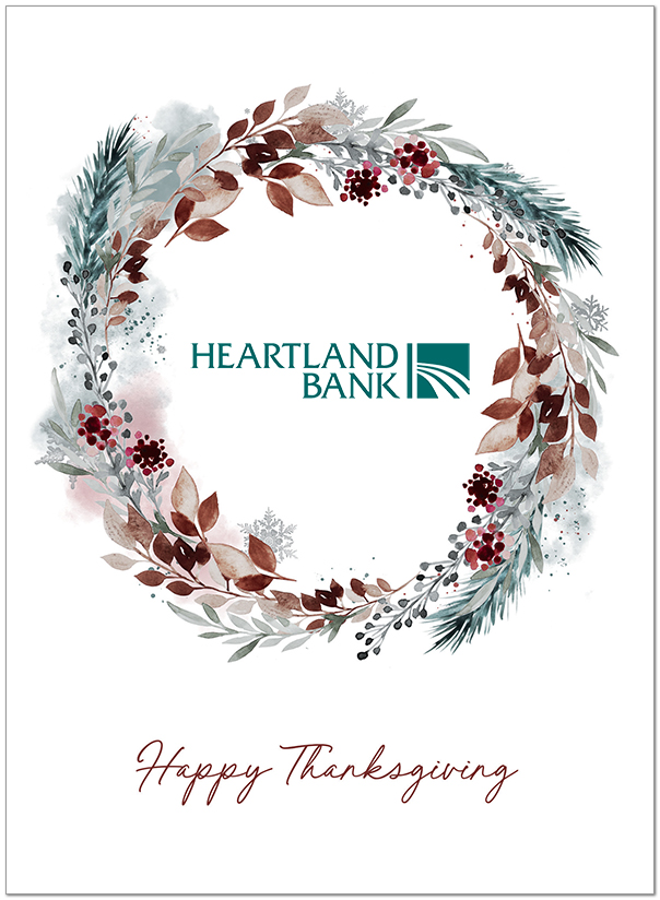Showcase your brand at Thanksgiving with this elegant wreath design. Printed on matte FSC® paper.